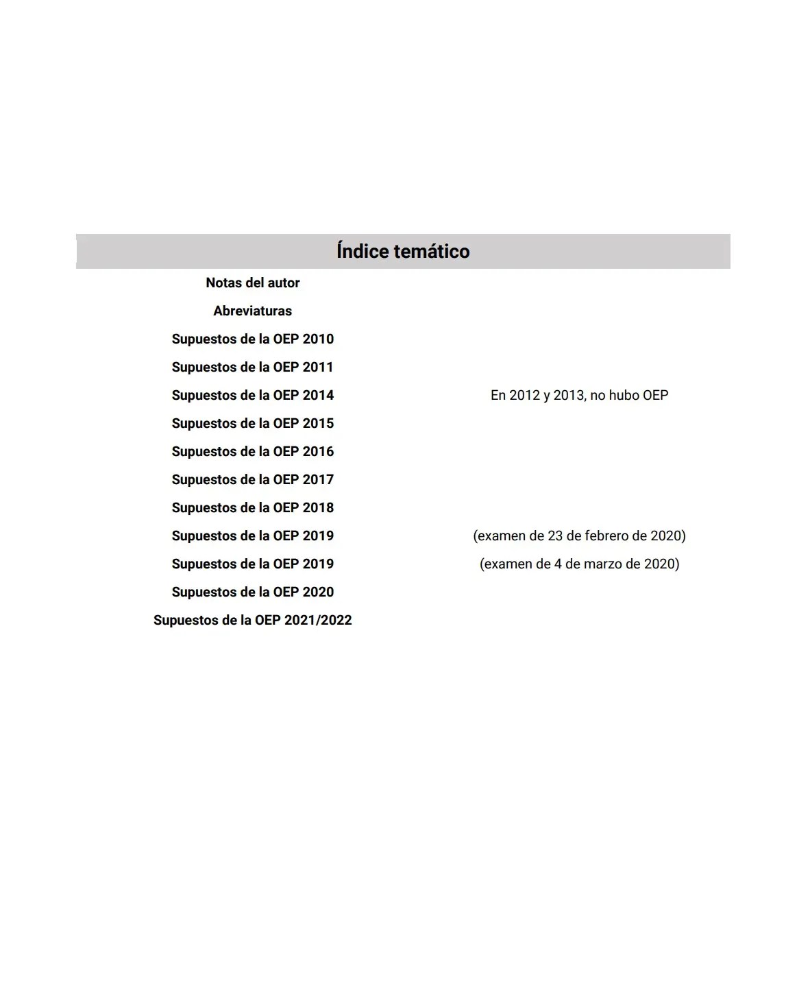 • Los supuestos se encuentran ordenados por Ofertas de Empleo Público. De modo que, de cada una se exponen todos los supuestos que han sido objeto de examen.