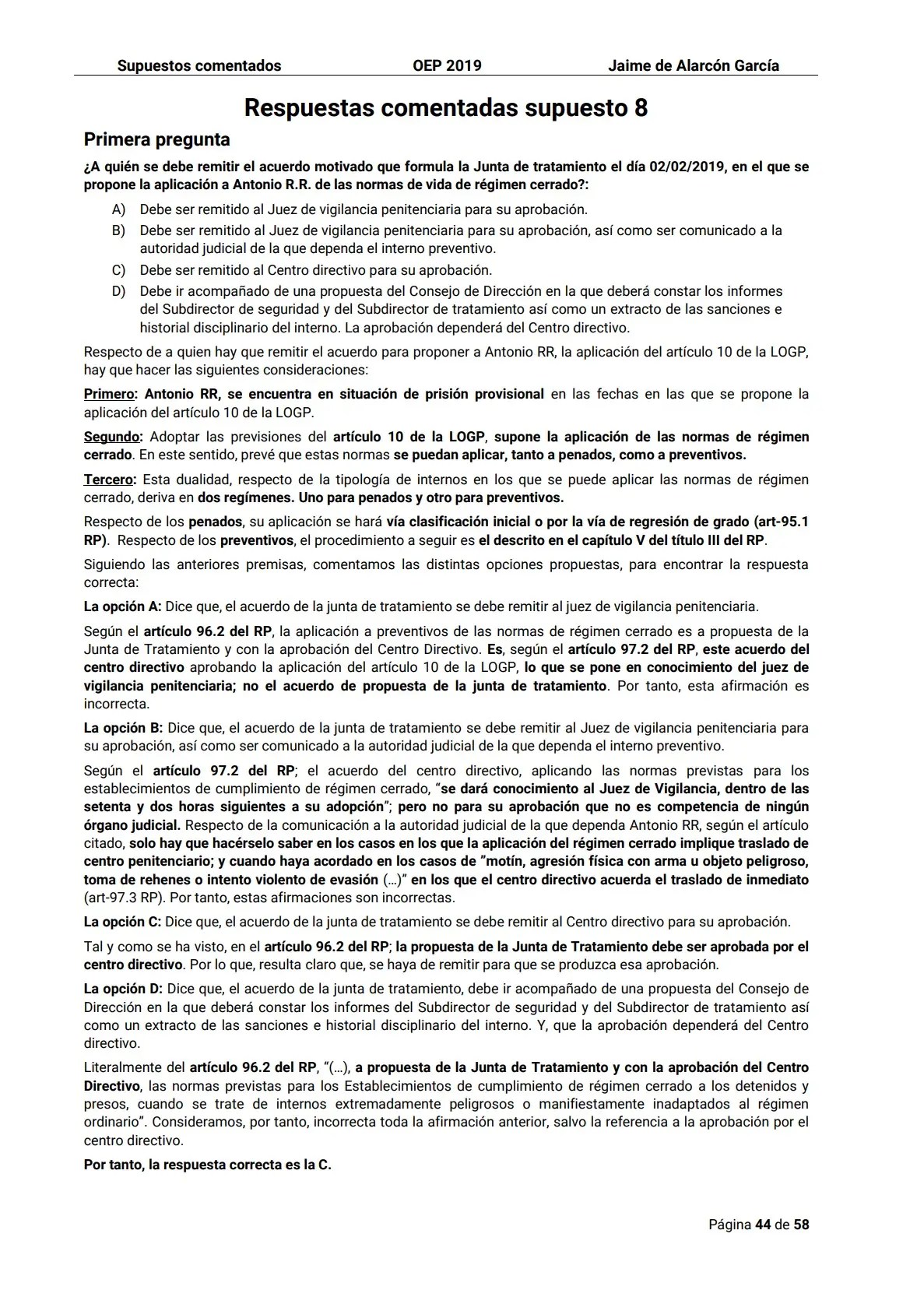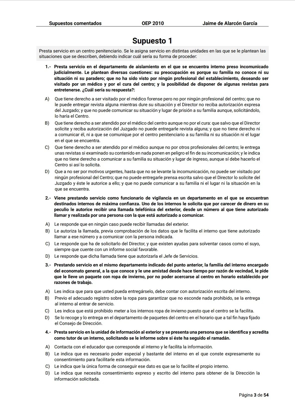 Supuestos oficiales comentados. Oposiciones Ayudantes de Instituciones Penitenciarias