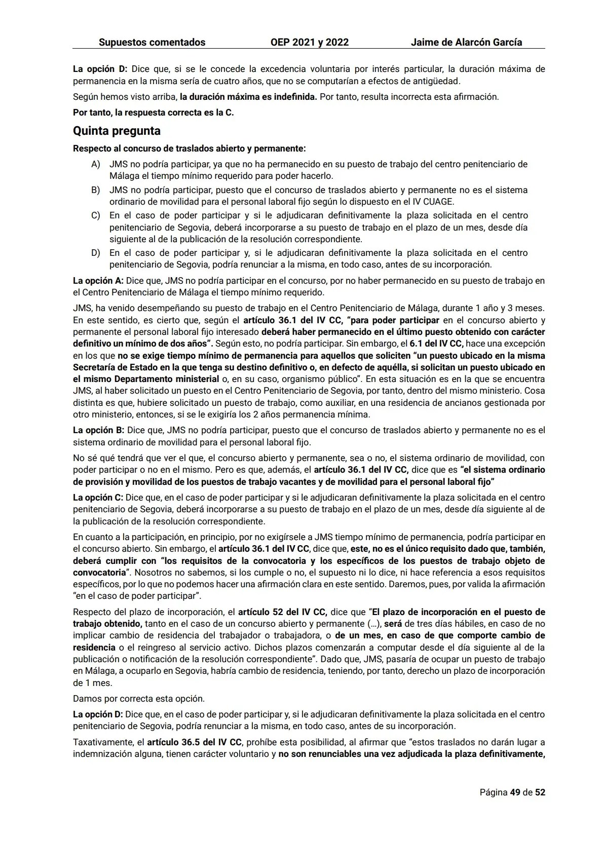 • Los razonamientos, no se limita a exponer el artículo y la opción correcta. Se hace una exhaustiva explicación de las normas aplicables, y el modo de adaptarlas a la opción que el tribunal dio por valida.